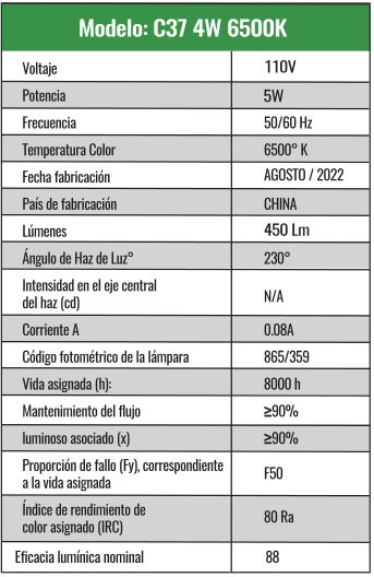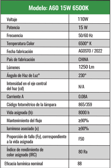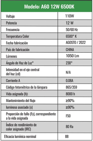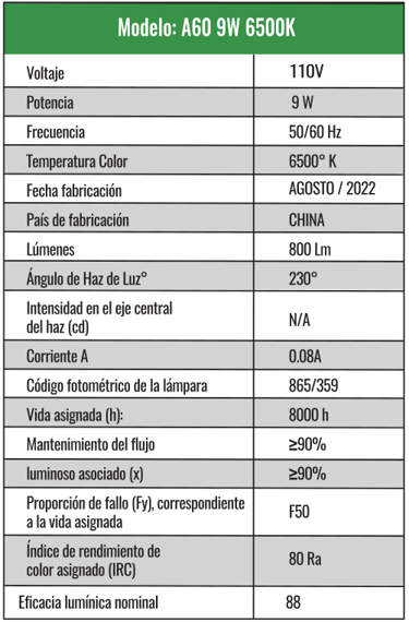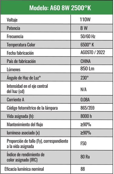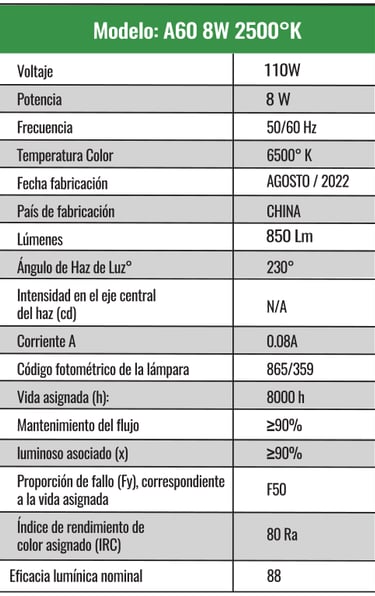 A60 8w Luz cálida