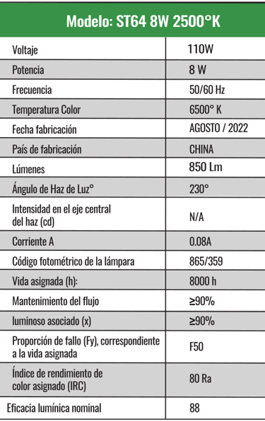 ST64 8w Luz Cálida