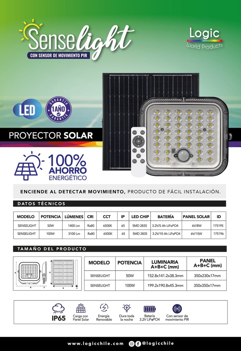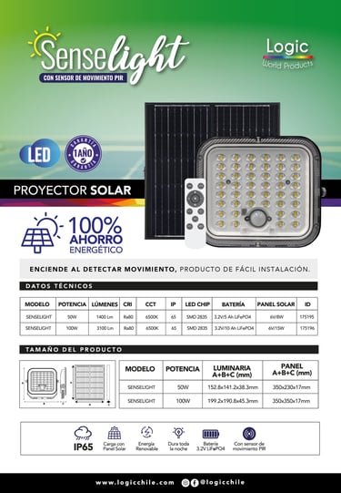 SenseLight 100w con sensor de movimiento PIR
